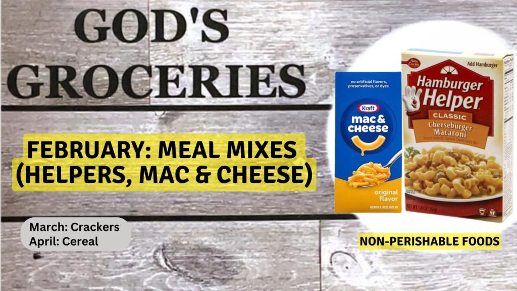 We are serving an average of 100 families each week- seniors, singles, and families with children. We are requesting specific items to be donated each month (see list below). Your help is greatly appreciated!